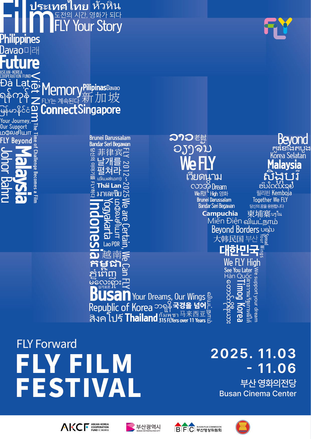 부산영상위원회는 한-ASEAN 영화공동체 프로그램의 대미를 장식할 "2025 FLY 영화제"를 11월 3일(월)부터 11월 6일(목)까지 영화의전당에서 개최한다. 한국과 아세안의 젊은 영화인들이 함께 성장하며 새로운 영화적 비전을 모색하자는 의미를 담은 슬로건 'FLY Forward'를 내세운 2025 FLY 영화제는 총 28편의 작품이 상영된다. 상영작은 ‘한-ASEAN 차세대영화인재육성사업: FLY’를 비롯해, 이후 다년도 사업 ‘한-ASEAN 영화공동체 프로그램’으로 확장되며 새롭게 추가된 ‘한-ASEAN 차세대 영화 기획 개발 워크숍: FLY Film Lab’과 ‘한-ASEAN 차세대영화·영상기술워크숍: FLY POST LAB’과정을 수료한 졸업생들의 작품으로 구성된다. 상영작들은 아세안 영화의 역동성과 다양성은 물론, 지난 11년간 이어온 FLY 영화인들의 협력과 성장을 집약적으로 보여준다. |